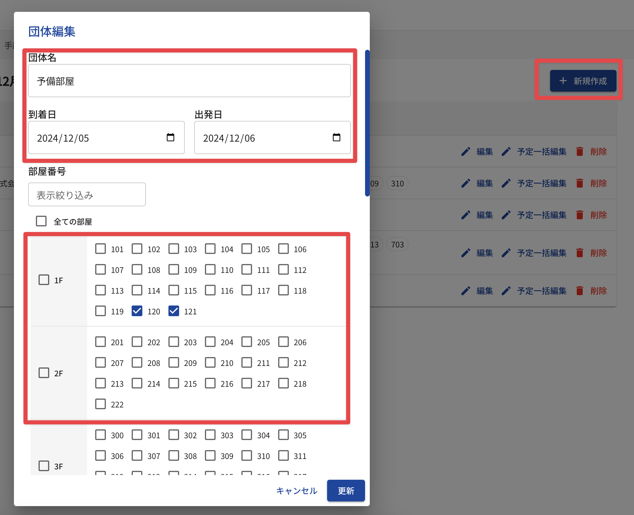急なルームチェンジ(アサイン変更)やウォークインに対応するために、予備部屋を作成する場合があります。その際に指示を出す方法です。