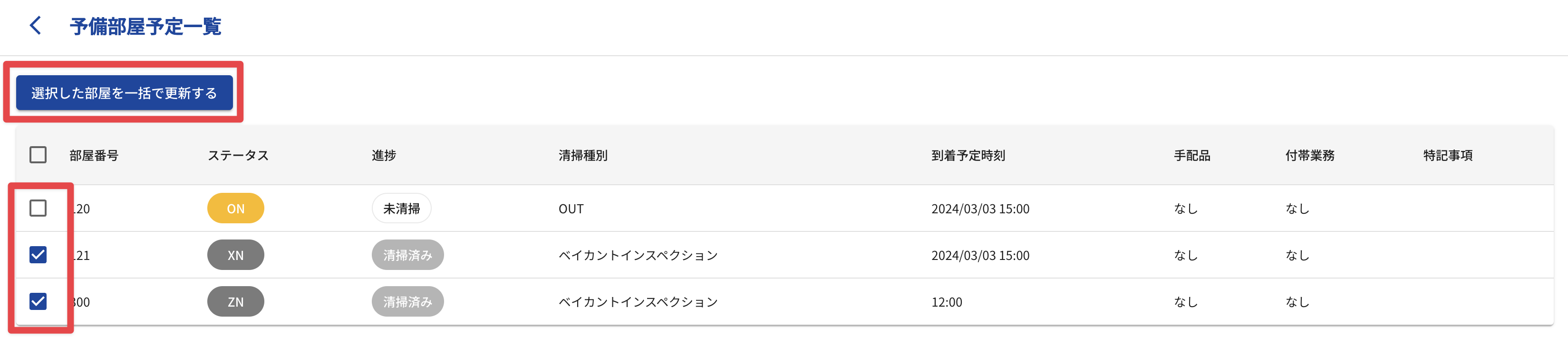 対象部屋を選択したら、適切な清掃種別を設定します。