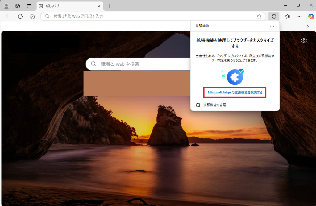 2. 「Microsoft Edgeの拡張機能を検出する」を選択します。