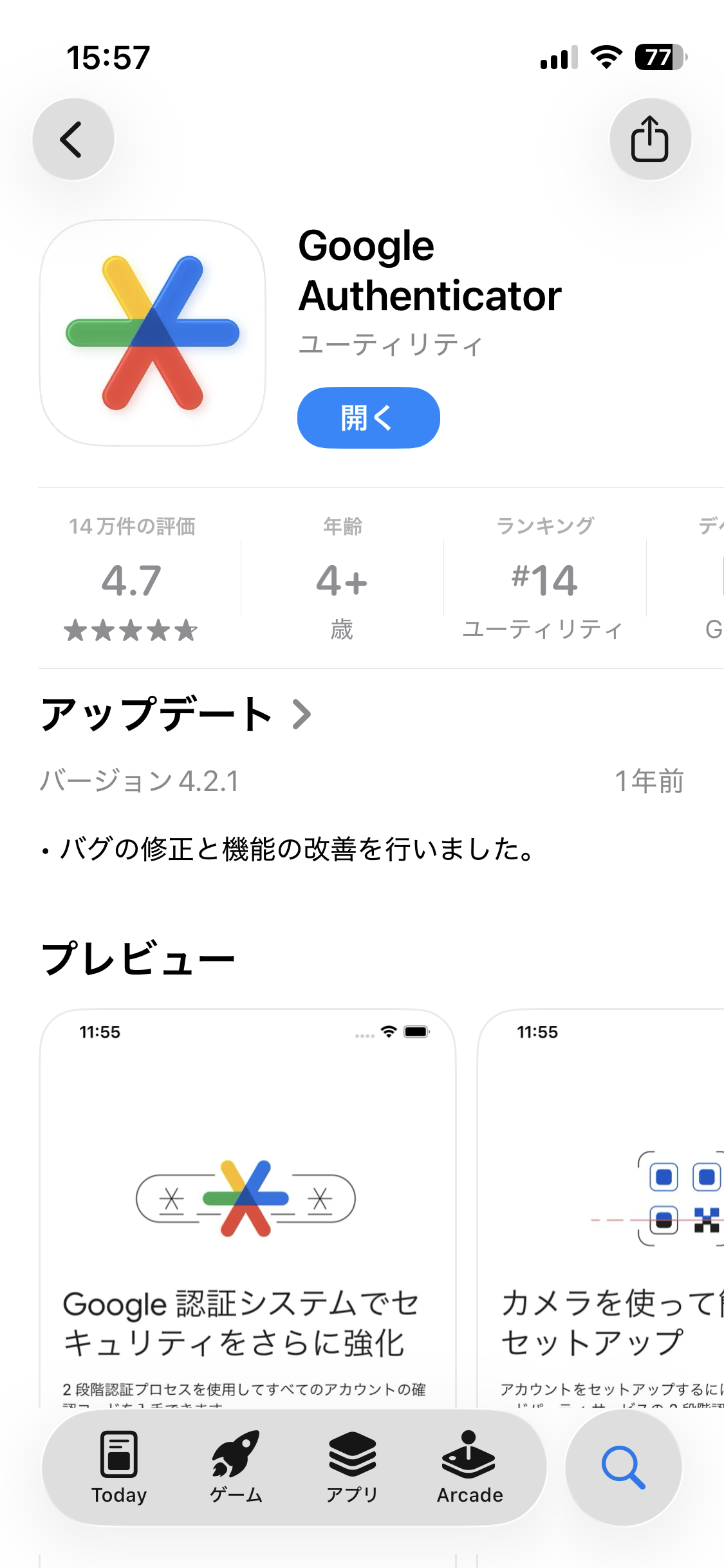 AppStoreで検索する場合は、「Google Authenticator」と検索してください。