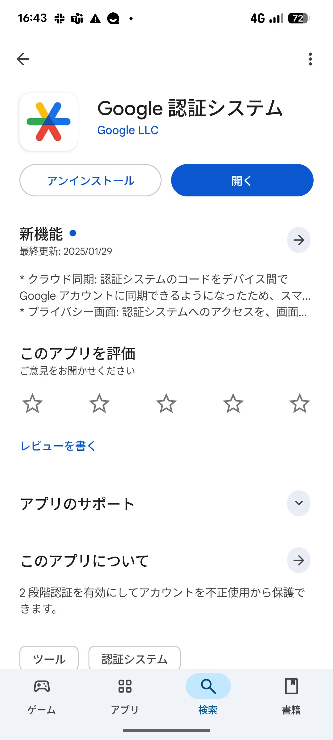 Google Playストアで検索する場合は、「認証システム」と検索してください。