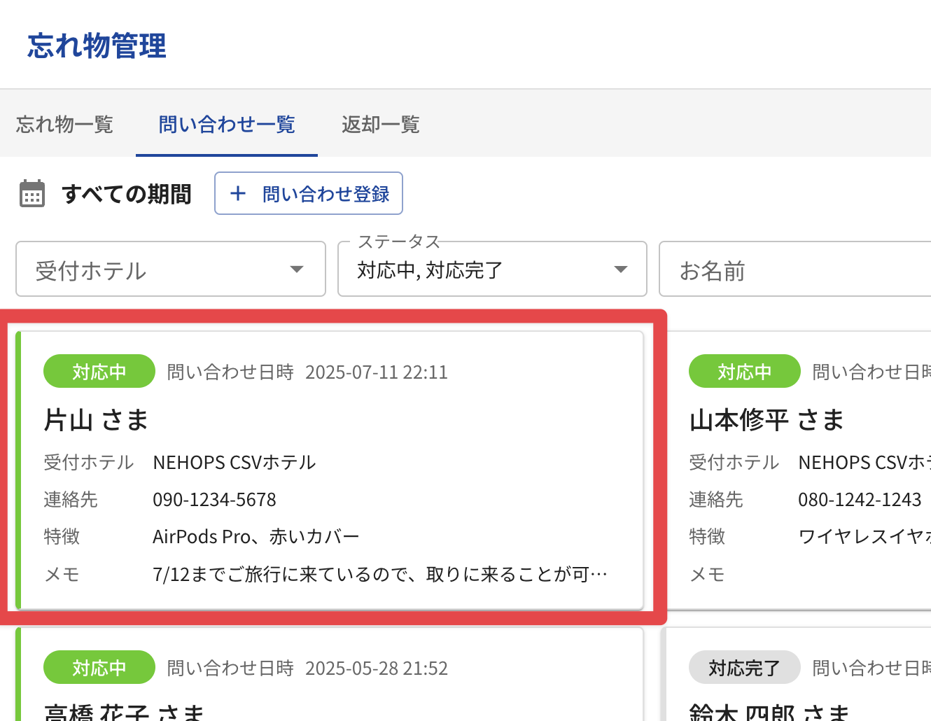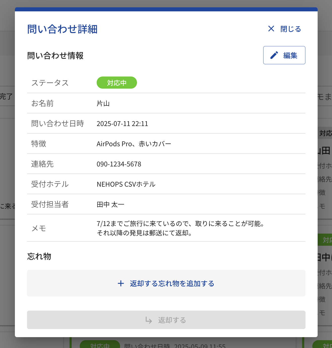 👩💻返却予定の忘れ物の管理と返却手続き