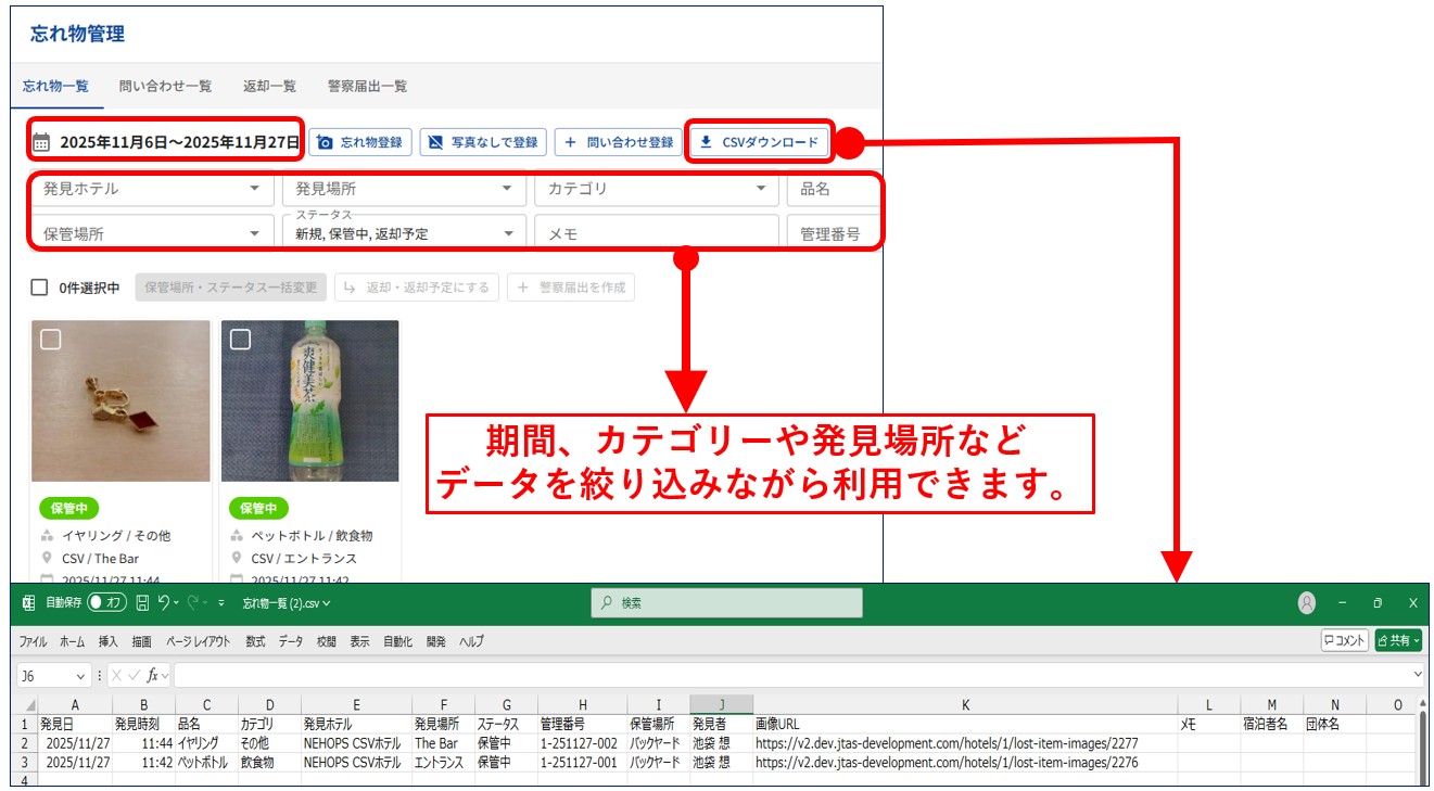 å¿ãç©ããŒã¿ã¯ãExcelã§ç·šéã§ããCSV圢åŒã«ãŠããŠã³ããŒãã§ããŸãã