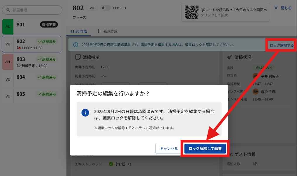 ホテルに日報が承認されるず実瞟デヌタが簡単に線集できないようにロックがかかりたす。