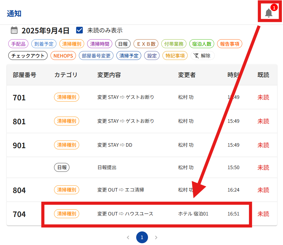 枅掃実瞟が倉曎されるず通知がされたす。実瞟デヌタを枅掃䌚瀟/ホテルナヌザヌのどちらが倉曎したずしおも、通知は双方に届きたす。