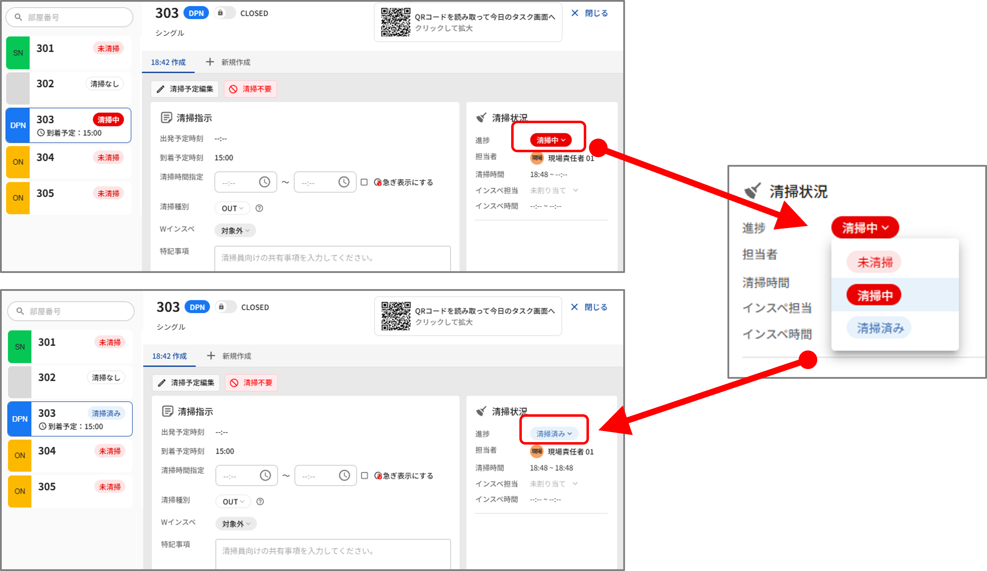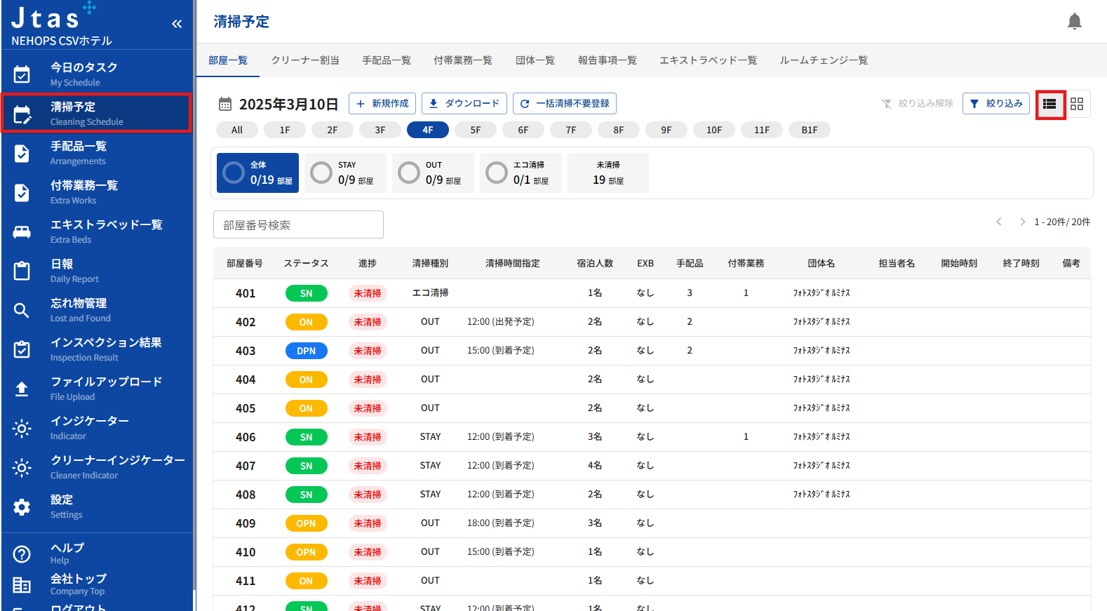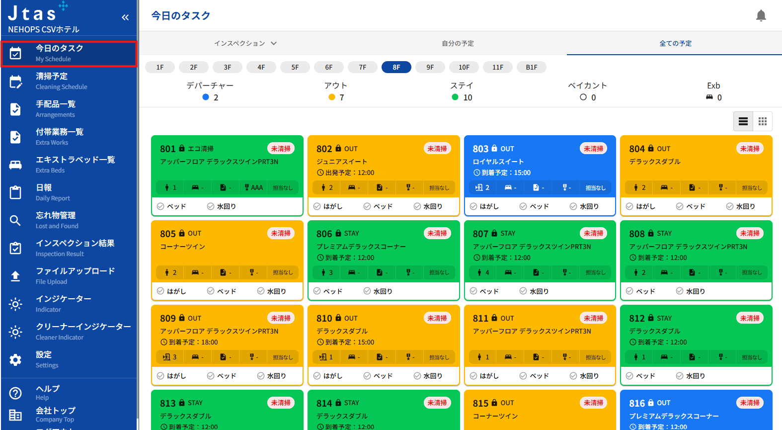 ãŸããéšå±çªå·ãã¯ãªãã¯ãããšãã詳现ã®äºå®ã衚瀺ãããŸããç»é¢å·Šã«ã¯ãåãããã¢ã®ã¹ããŒã¿ã¹ã衚瀺ãããæ€çŽ¢ç»é¢ããå¥ããã¢ã®ã¹ããŒã¿ã¹ãç»é¢ãé·ç§»ããªãç¶æ ã§ç¢ºèªã§ããŸãã