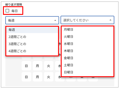 ééã¯ãæ¯æ¥/é±ããš/ææ¥ããš(è€æ°éžæå¯)ããèšå®ã§ããŸãã