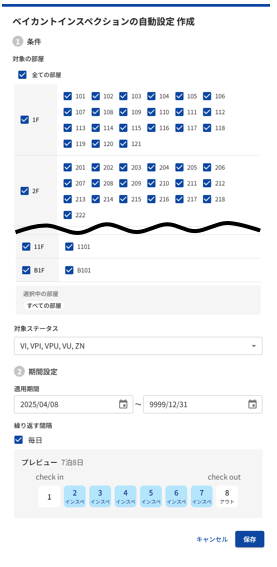 ç¹°ãè¿ãééïŒãã§ãã¯ã€ã³åŸã®ç¿æ¥ããæ°ããŠäœæ¥ã«1åæž æããããèšå®ããŸãã