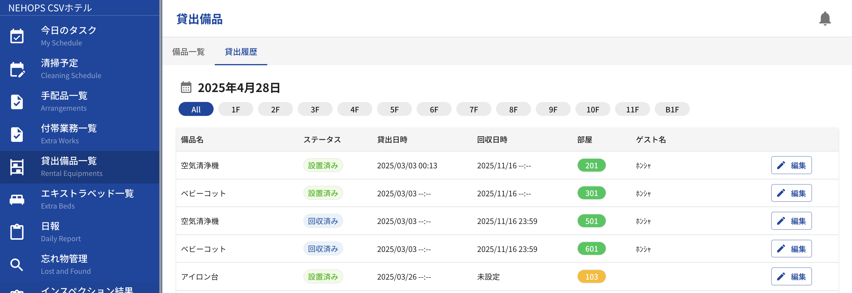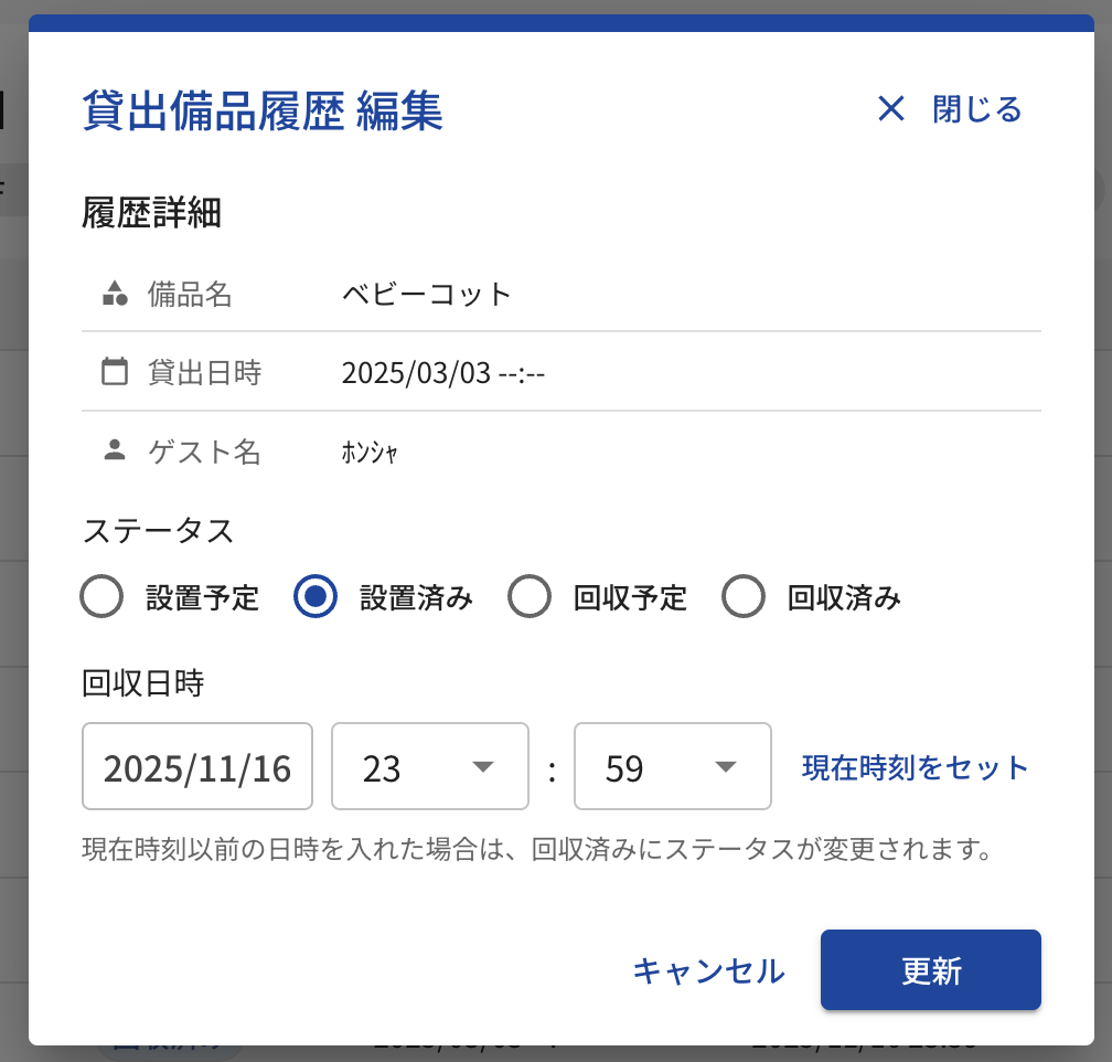 以äžã®è¡šã®ããã«èšçœ®æ¥ã«ã¯èšçœ®ã®æç€ºãåºãŠãæ»åšäžã¯èšçœ®æžã¿ãšè¡šç€ºãããã¢ãŠãæ¥ã«ã¯ååæç€ºãåºããããã«ãªã£ãŠãããŸãã