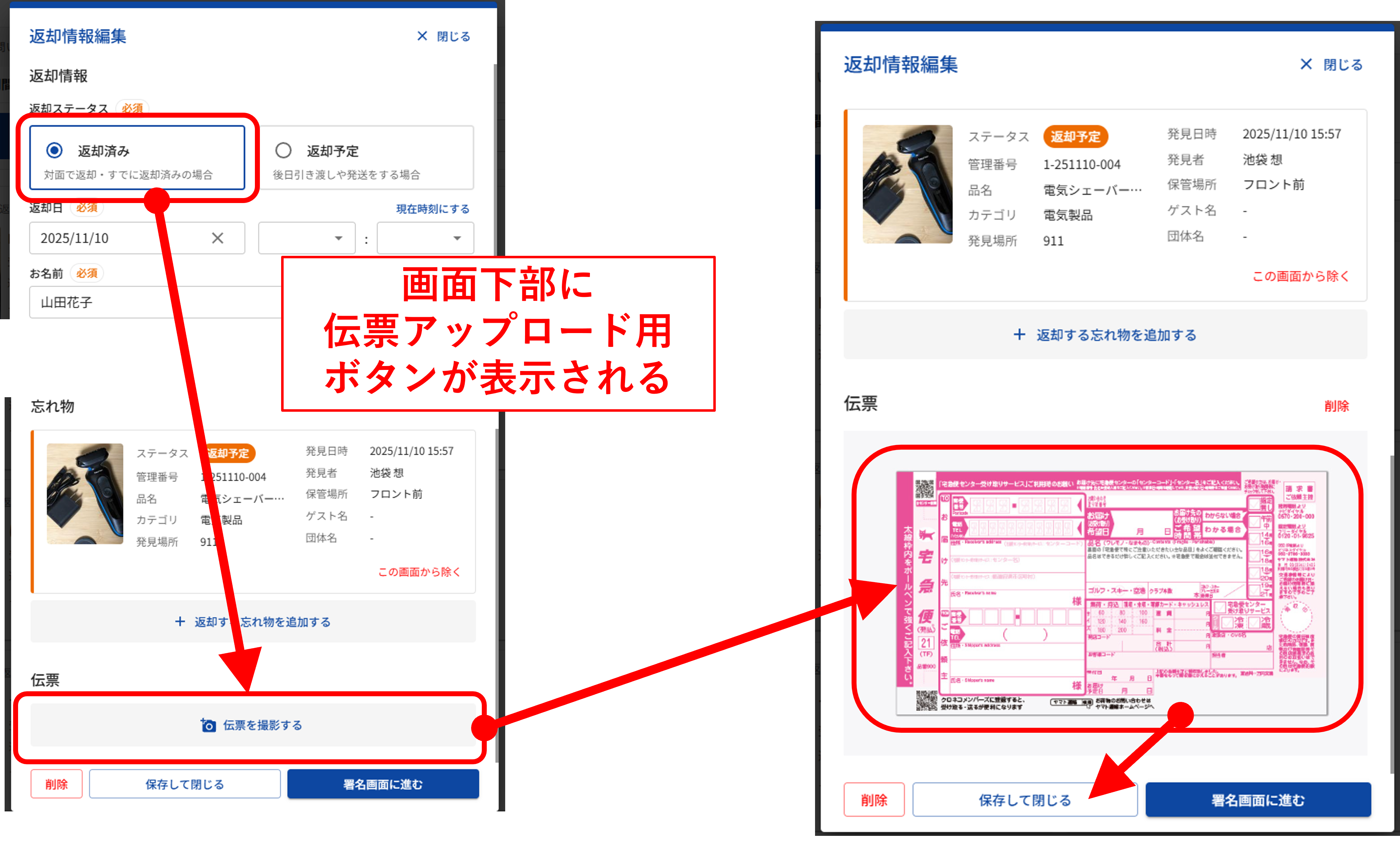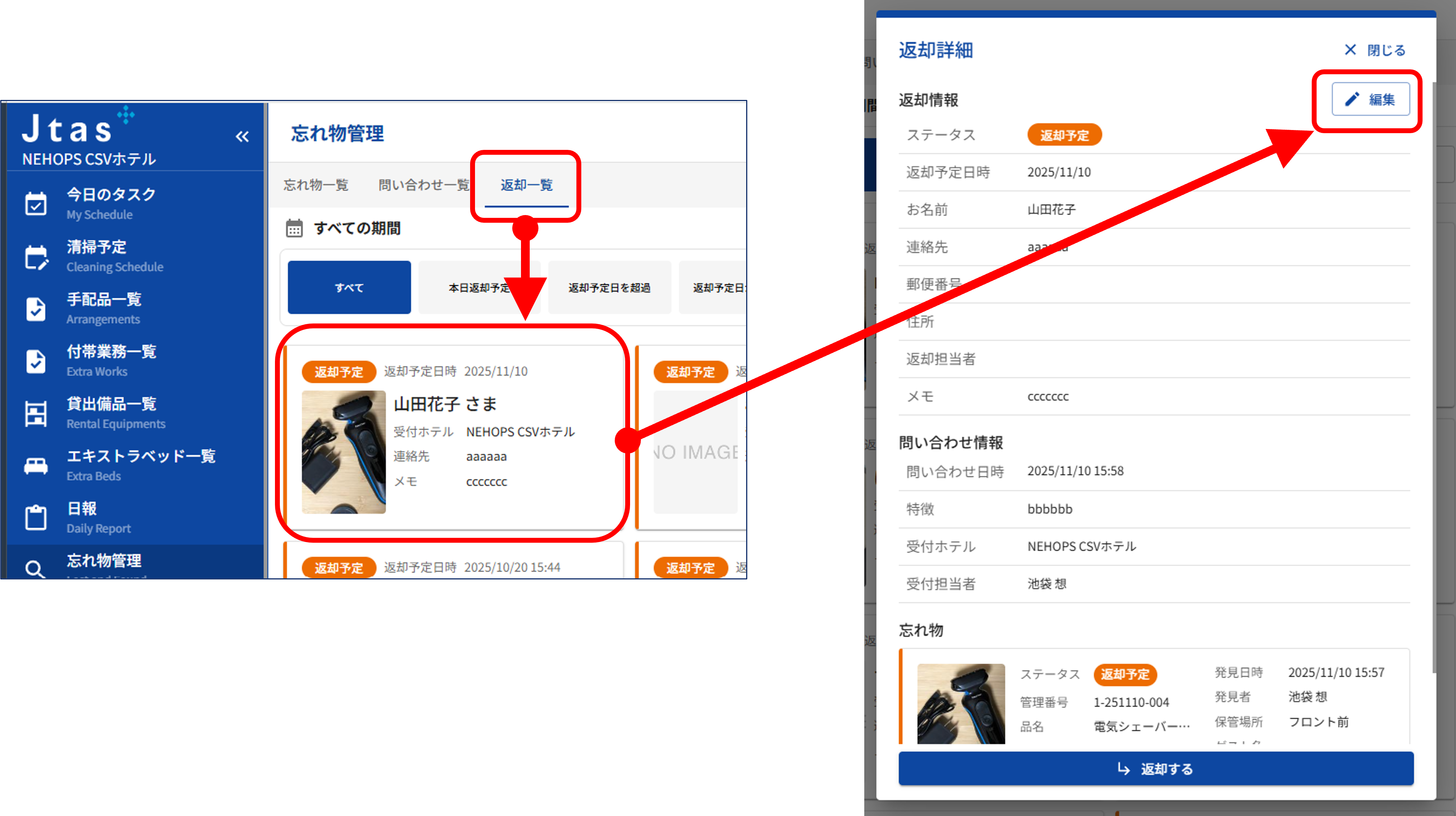 å¿ãç©è©³çްç»é¢ãããè¿åŽããããéžæããŠãè¿åŽäºå®æ¥ãå ¥åããŸãã