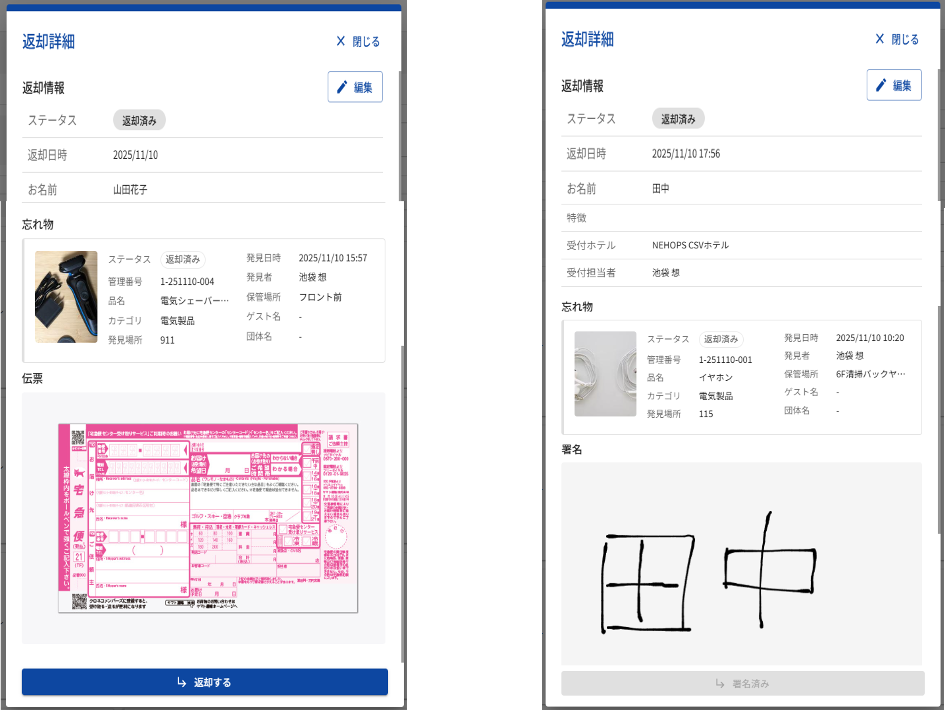 è¿åŽããå¿ãç©ã®ã¯ãªãã¯ãããšè©³çްç»é¢ãããã眲åãªã©ã確èªå¯èœã§ãã