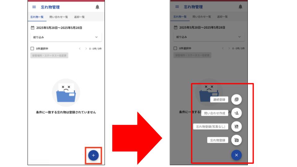 「忘れ物一覧」画面の、忘れ物登録ボタンのデザインが変更になりました。
