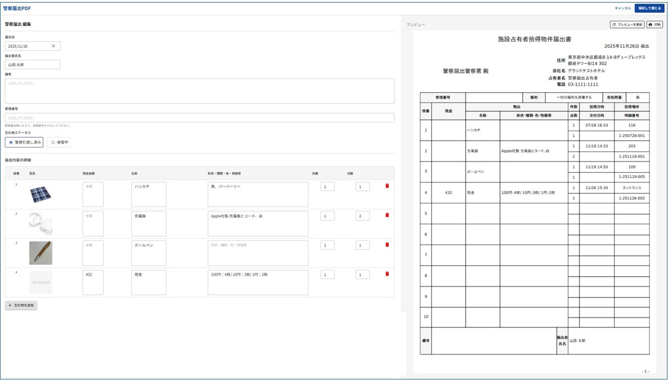 警察届出PDFで入力できるようになった項目の詳細は以下のページからご確認ください。