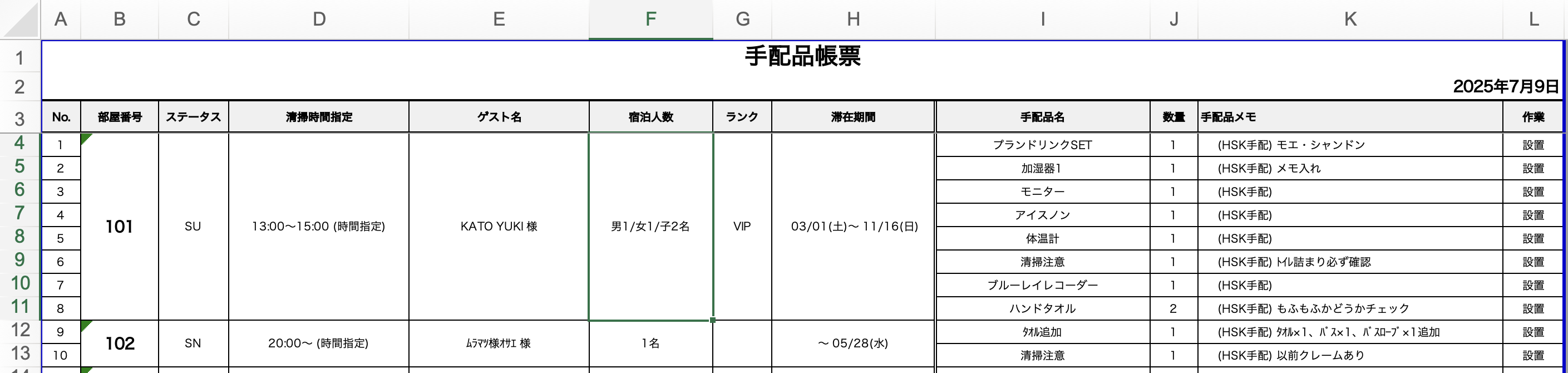 清掃予定の詳細を確認する画面等にて、宿泊人数の詳細が表示されるようになりました。