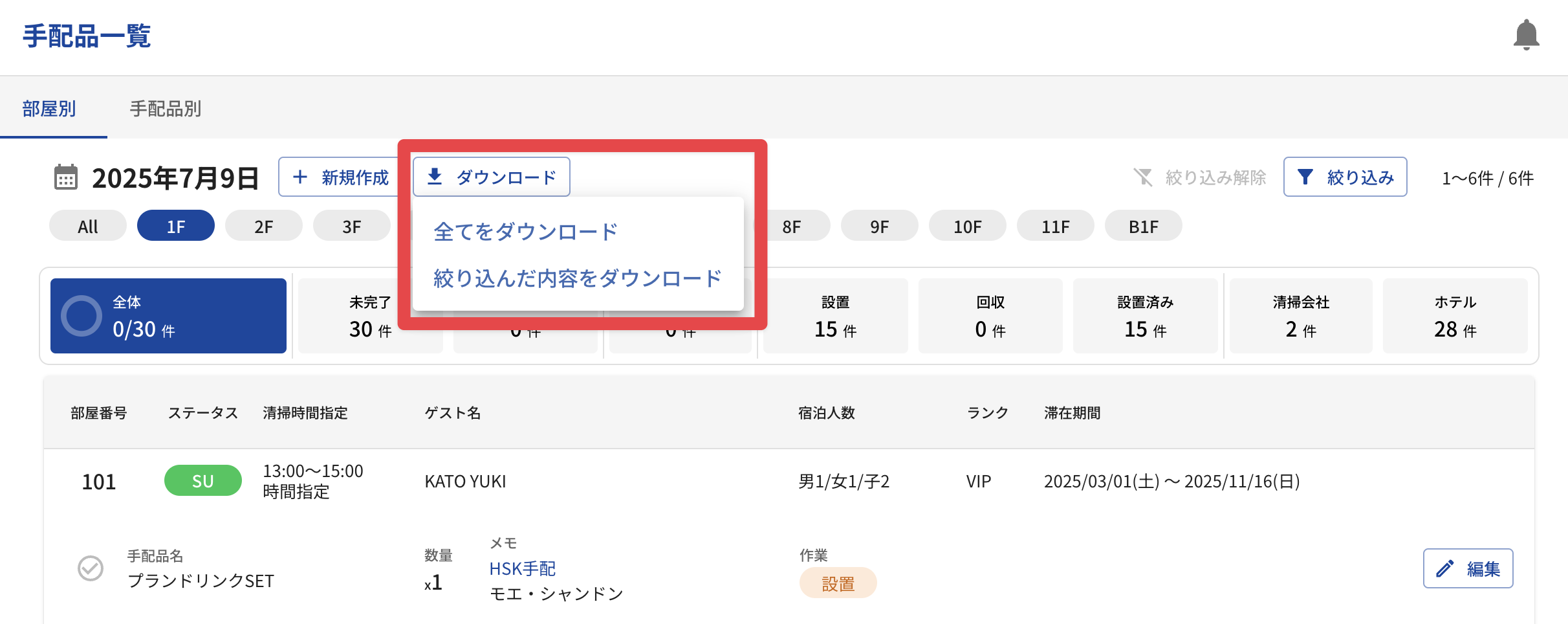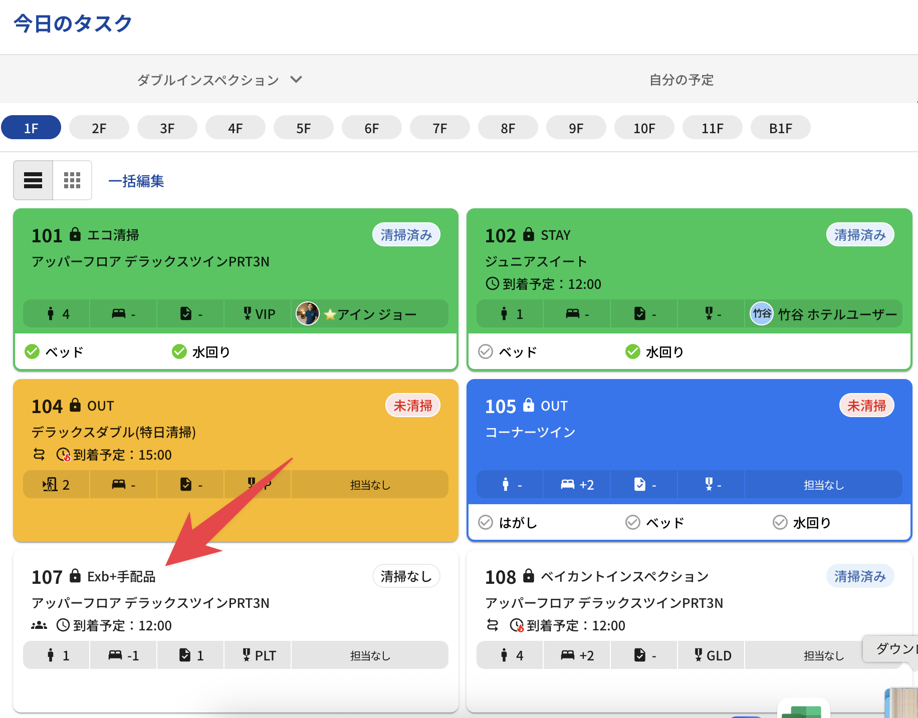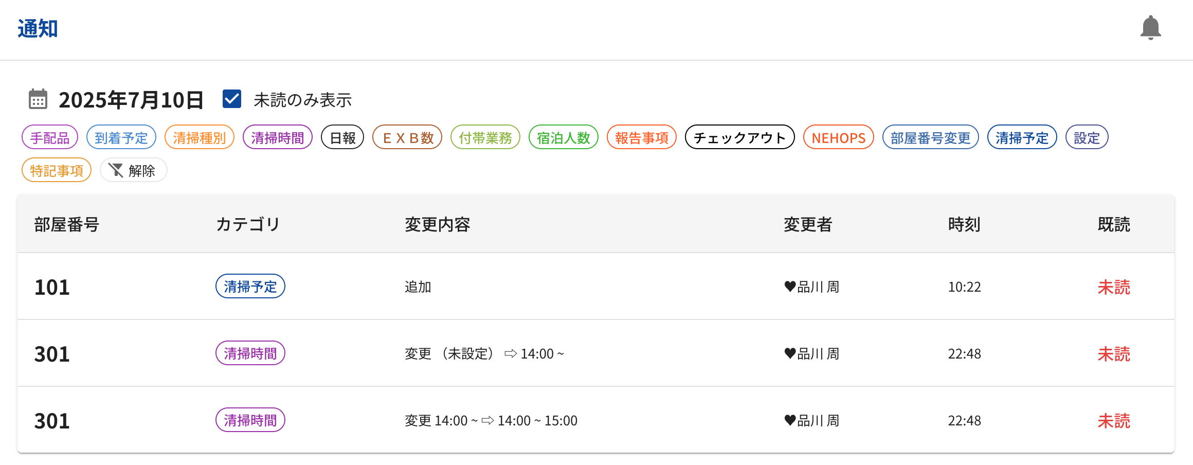 今日のタスクの画面変更(急ぎ清掃やステイ清掃の時間指定の別枠表示)以外は、15日より前にリリース済みの機能になります。