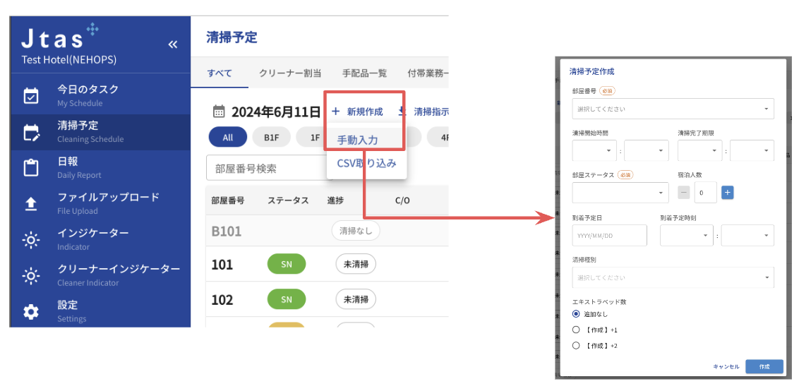1. 清掃予定画面 + [新規作成] から追加