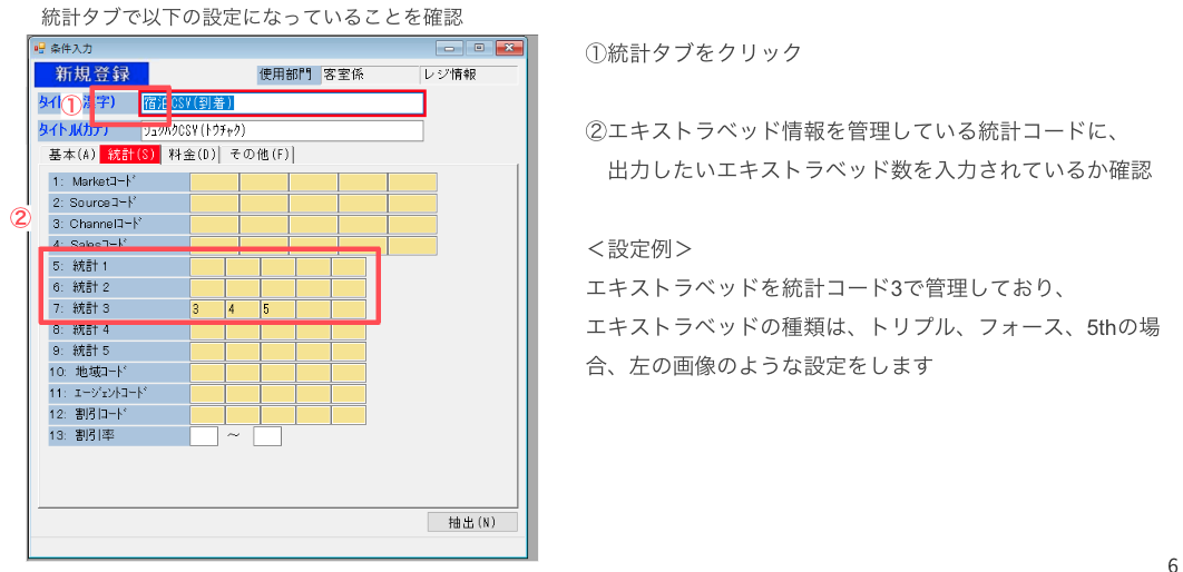 ☑️ エキストラベッド情報を統計コードで管理している場合は、上記の設定に加えて